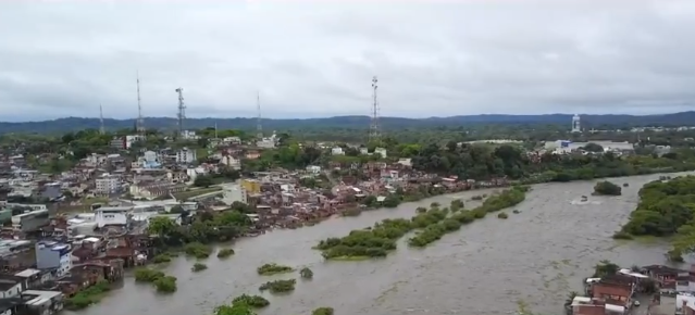 Também em Ilhéus, uma ponte que fica sobre o Rio Cachoeira, ficou submersa.